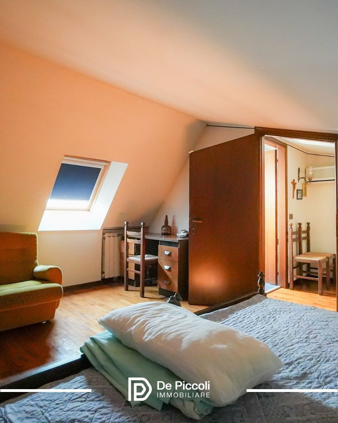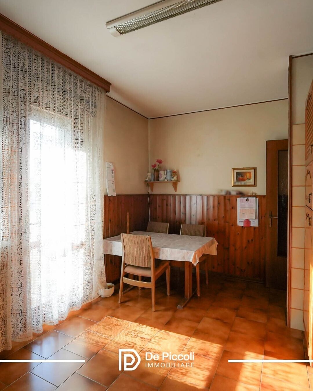 Salendo al piano rialzato, l’abitazione accoglie con una luminosissima cucina separata e un soggiorno di generose dimensioni, perfetto per i momenti in famiglia. A completare il livello, un pratico bagno di servizio.