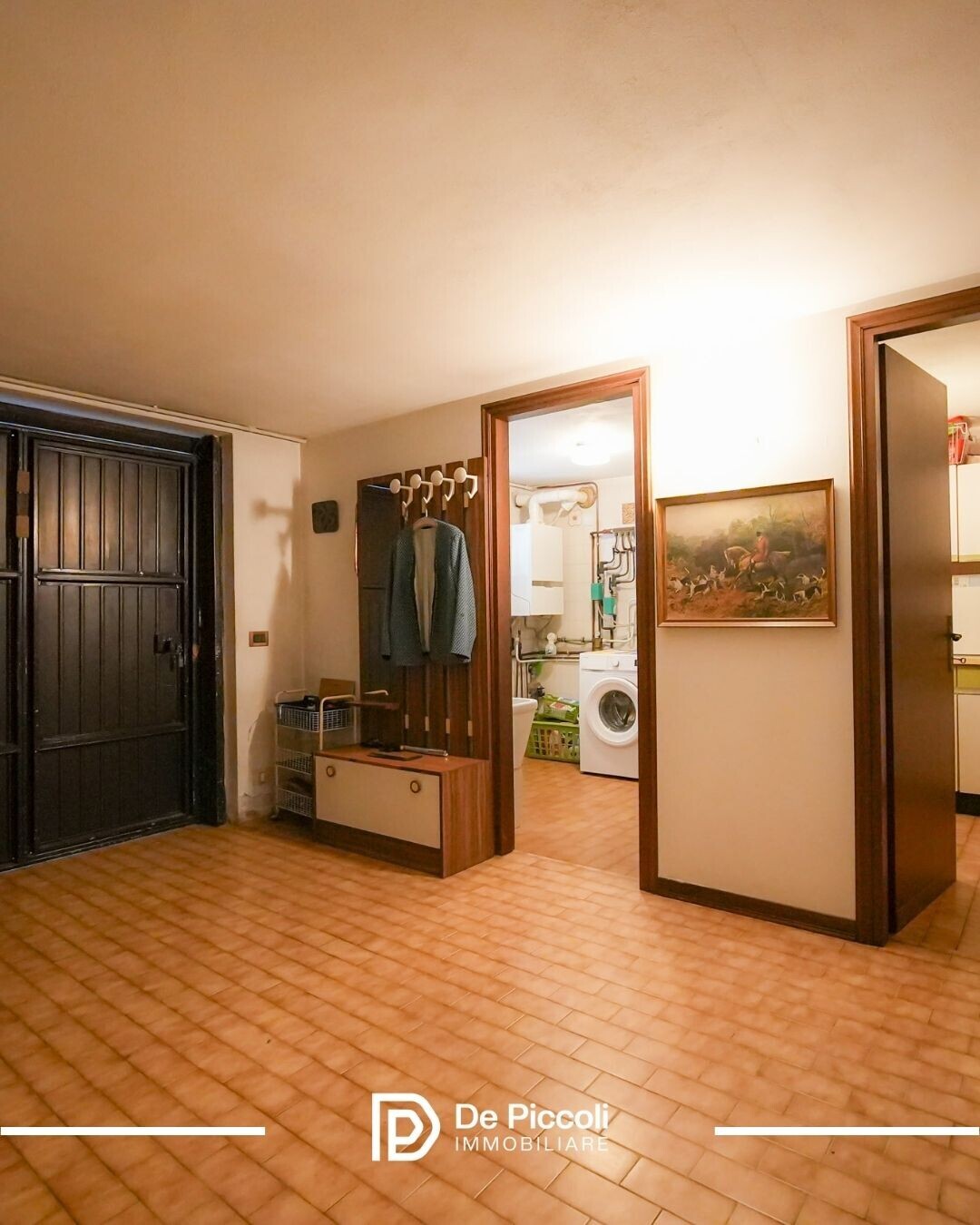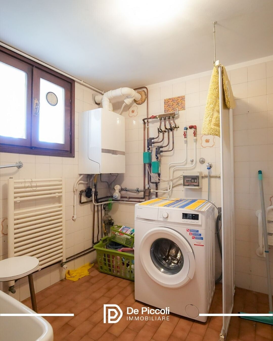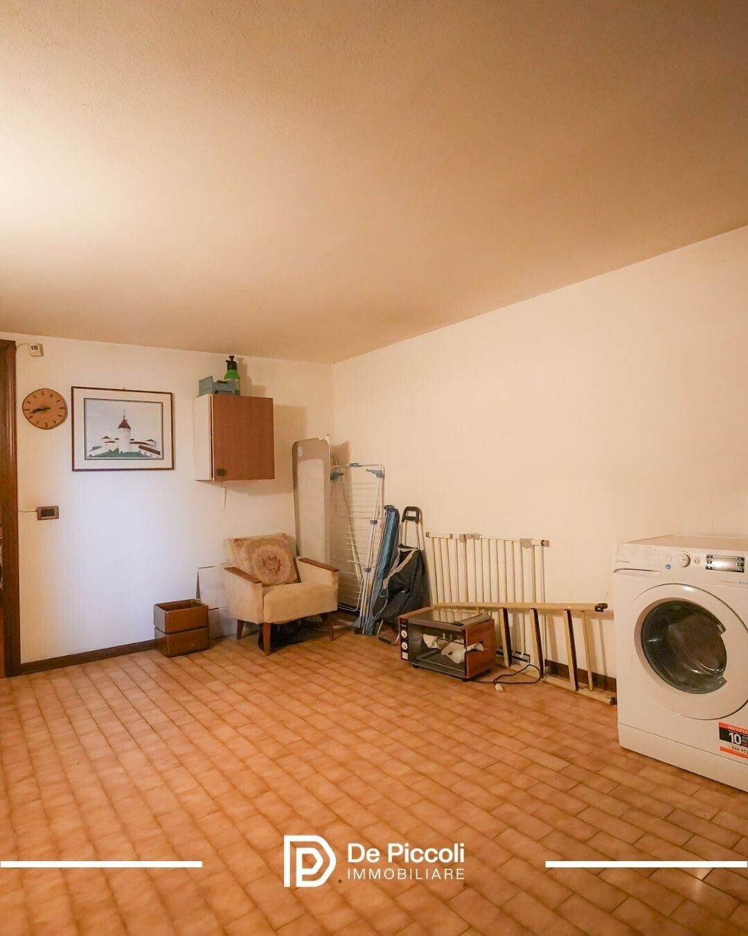 Al piano interrato troviamo una taverna con caminetto ideale come zona hobby o deposito, un ripostiglio, una lavanderia con wc e il garage collegato.