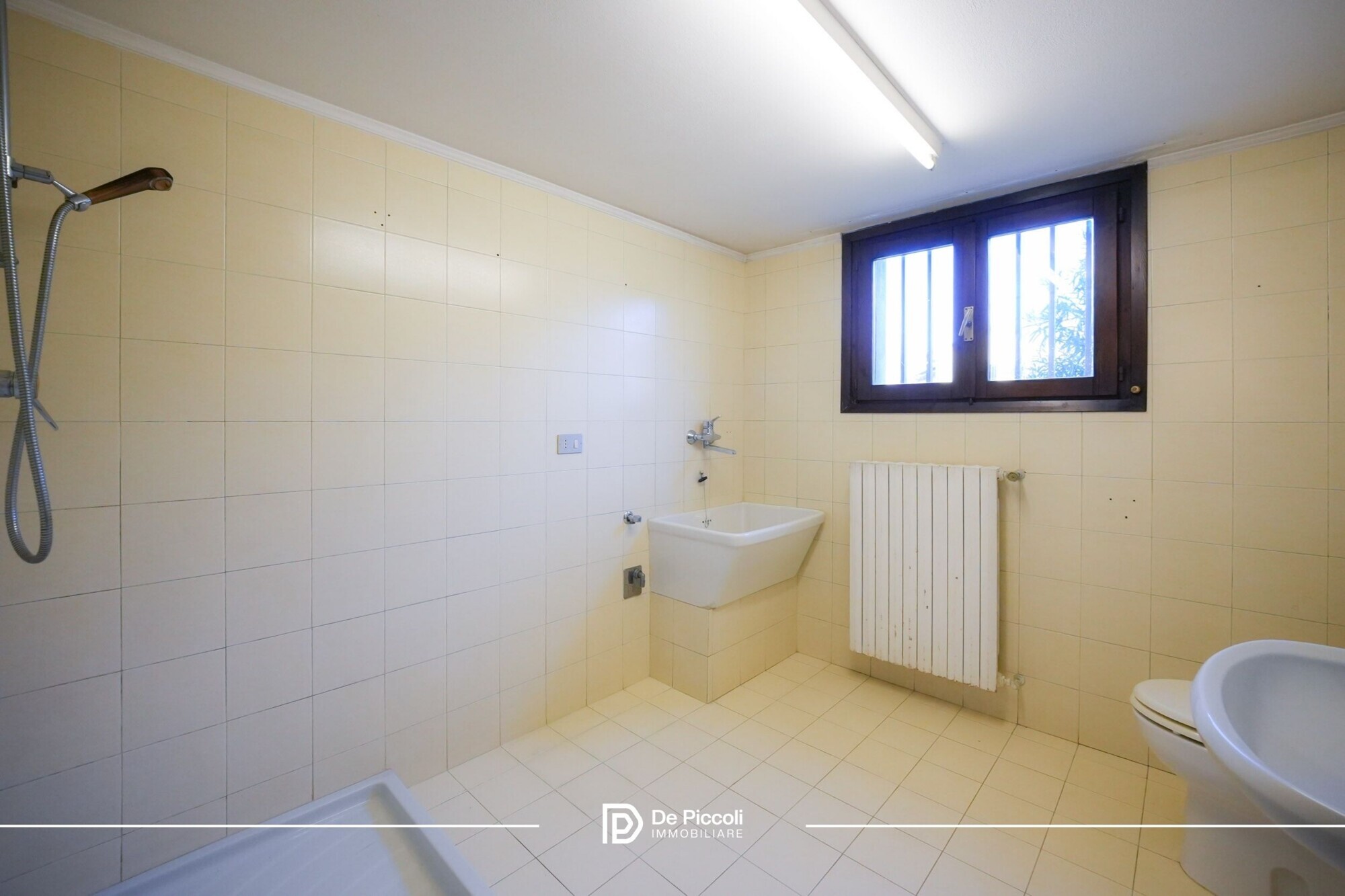 Al piano terra sono presenti un comodo ripostiglio, una pratica lavanderia, un grande garage e una cantina, spazi fondamentali per organizzare al meglio la casa e soddisfare ogni esigenza di deposito e servizio.